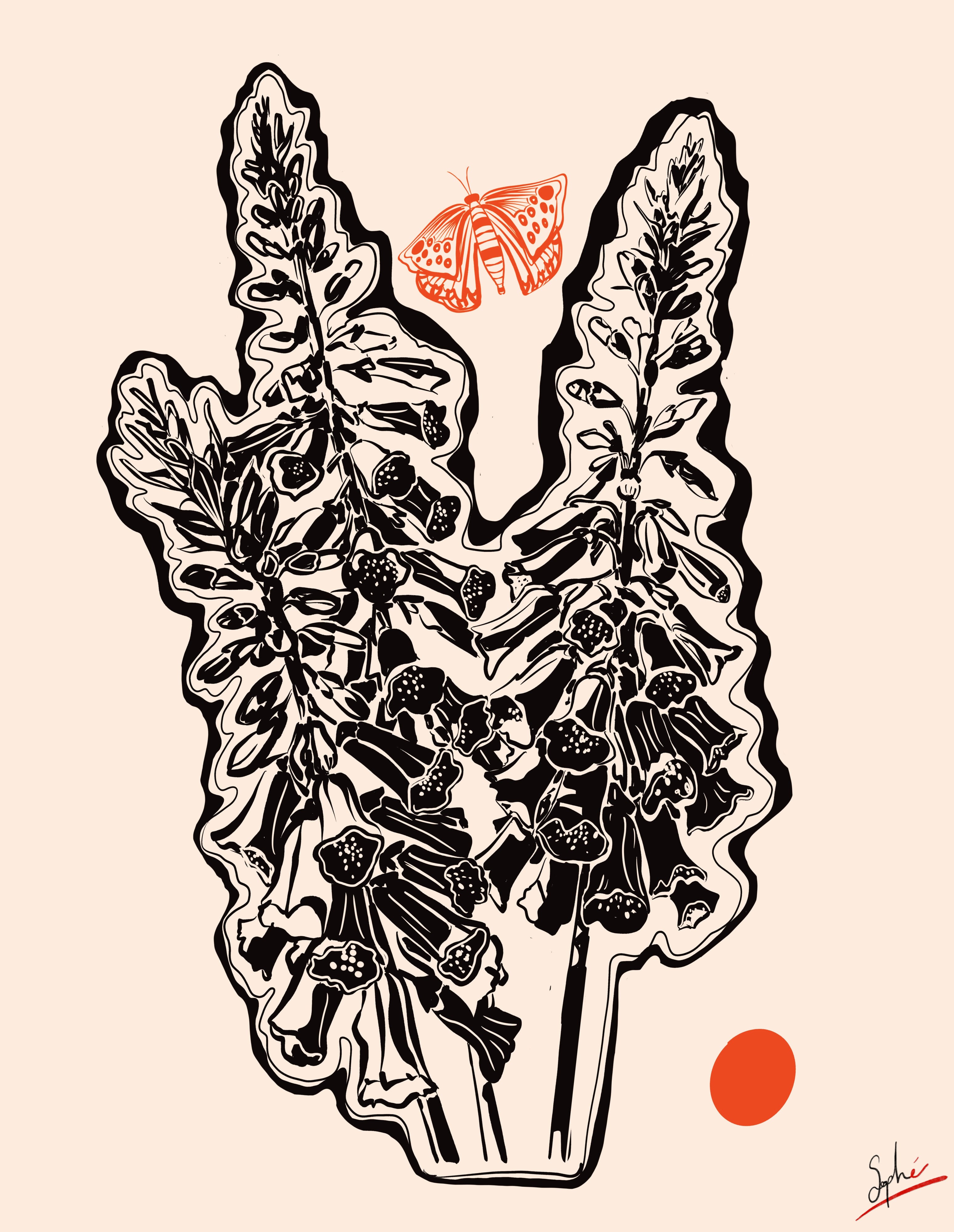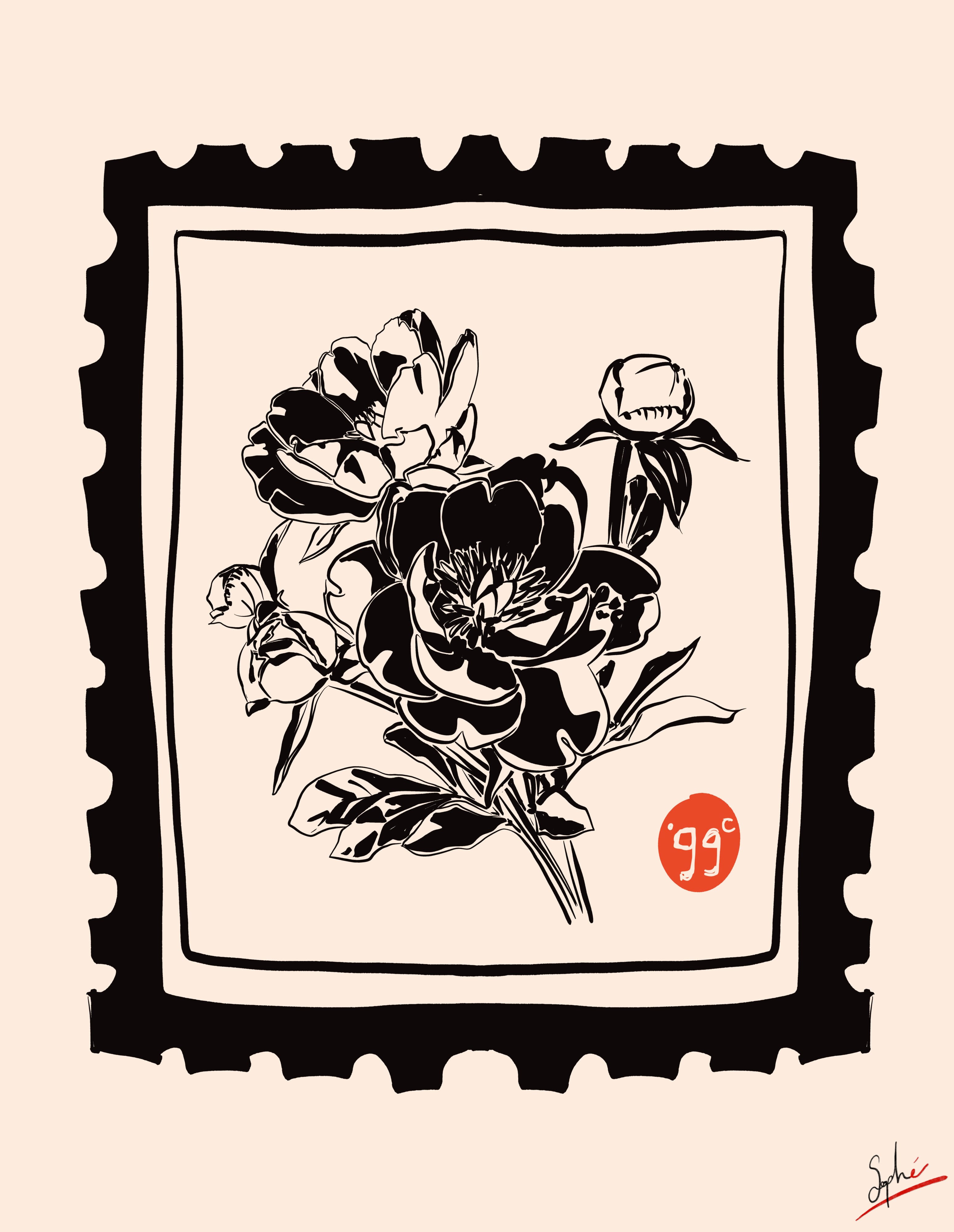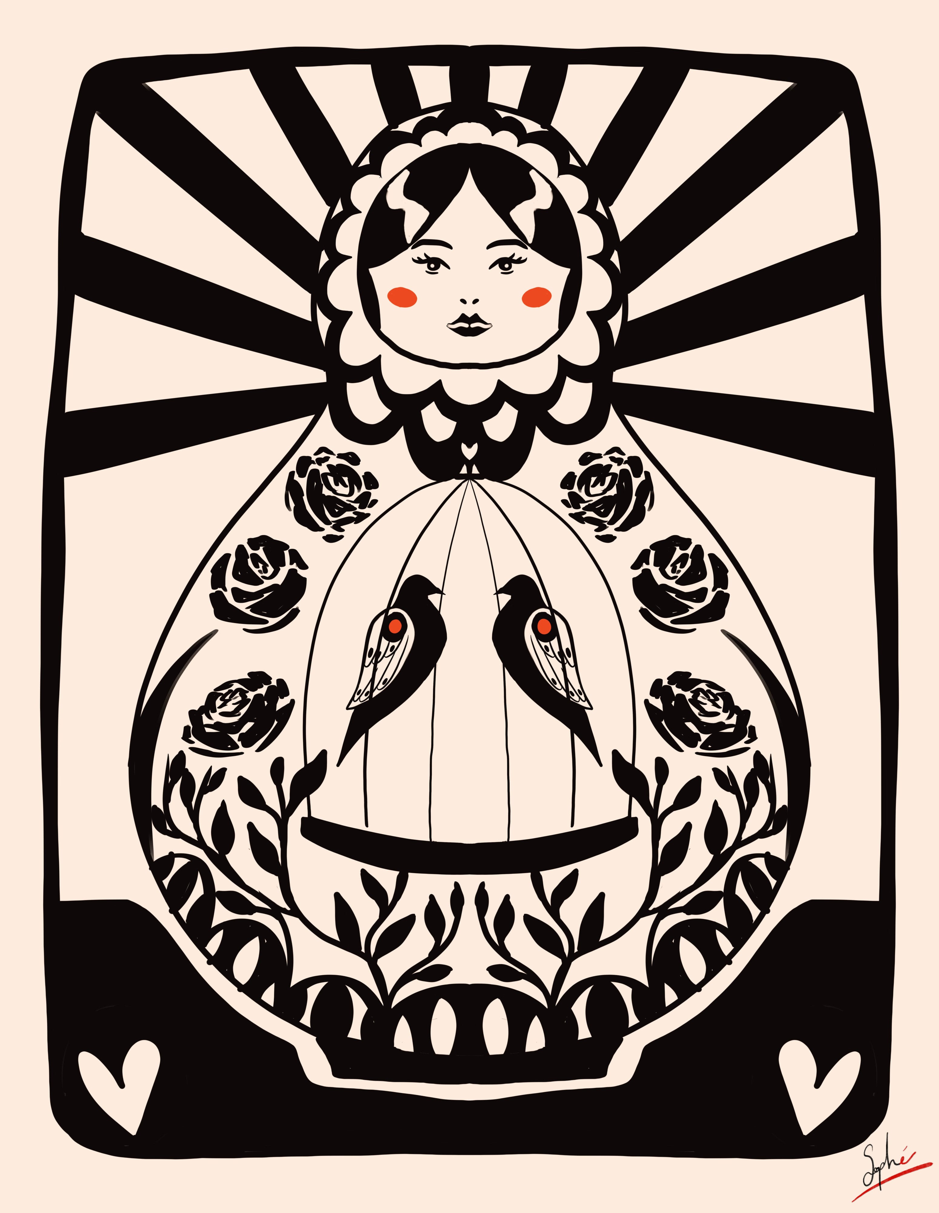 Noir et rougeMontagnes et soleil Poulpe et corail Digitales et papillon Poupée russe Timbre fleuri Enoki, ail et gingembre Paon à la fenêtre